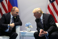 Беседа двух лидеров проходила в расширенном формате в рамках саммита Большой двадцатки в Гамбурге в городском Конгресс-центре в комнате под номером 14. В ней с российской стороны участвовали также главы внешнеполитических ведомств Сергей Лавров и Рекс Тиллерсон соответственно.