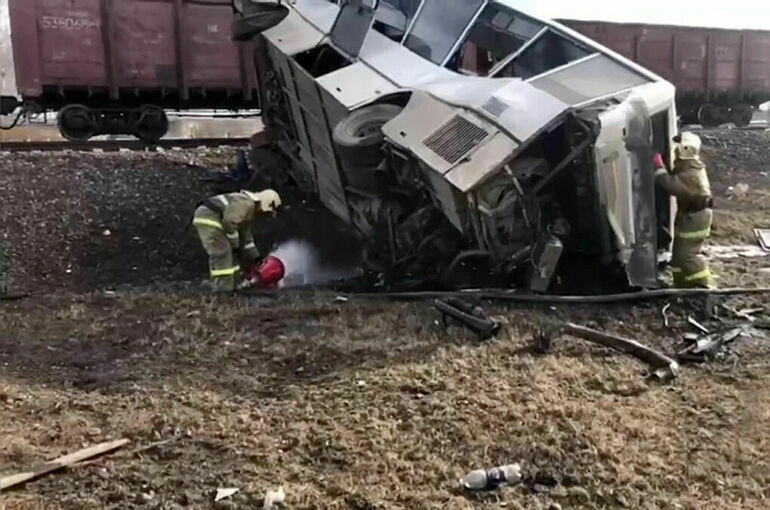 Ранее в прокуратуре сообщили, что автобус заглох на путях. Машинист применил экстренное торможение, но столкновения избежать не удалось.