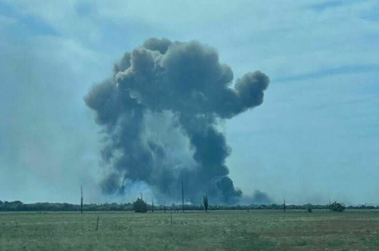 Около 15 часов на военном аэродроме в Сакском районе Крыма произошло несколько взрывов. В Минобороны заявили, что взрывы произошли из-за детонации нескольких авиационных боеприпасов.