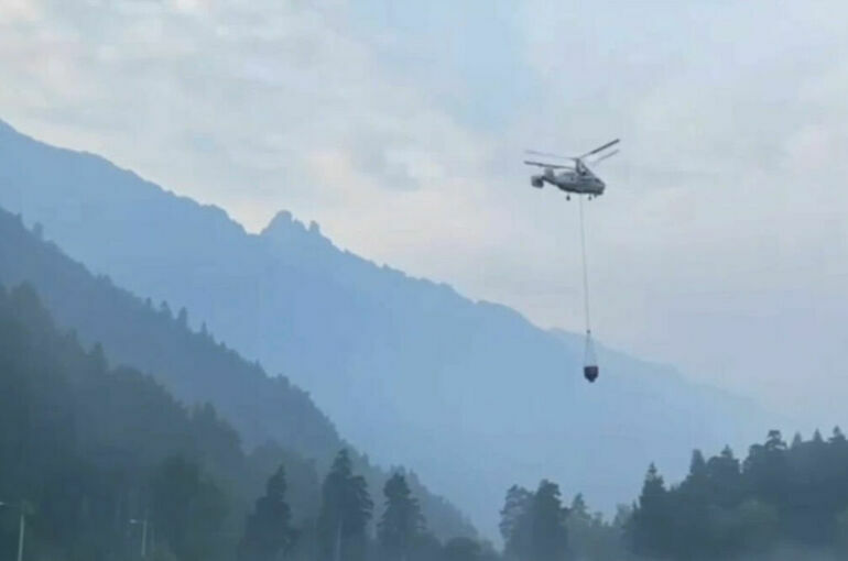 Для тушения очагов возгорания в труднодоступных местах привлекается вертолет Ка-32 МЧС России с водосливным устройством. К настоящему моменту произведено 12 точечных сбросов воды.