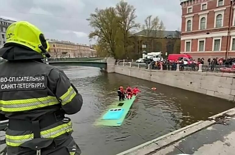 В центре Петербурга автобус с людьми упал в реку и ушел под воду