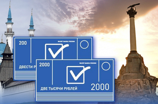 На новых банкнотах номиналом 200 и 2000 рублей появятся Дальний Восток и Севастополь. Финал голосования транслировал в прямом эфире телеканал «Россия 1», зрители могли отдать свои предпочтения при помощи SMS.