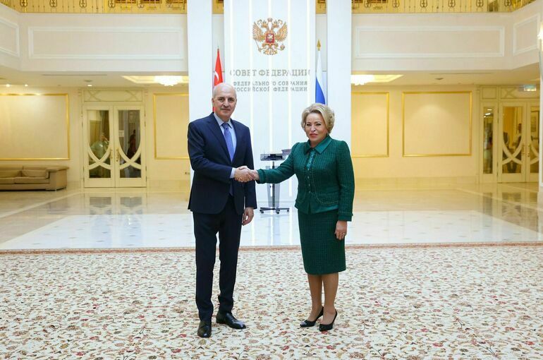 В России ценят позицию турецких партнеров в поддержку наращивания взаимного сотрудничества по широкому спектру направлений. Об этом 24 сентября заявила председатель Совета Федерации Валентина Матвиенко на встрече с главой Великого национального собрания (парламента) Турции Нуманом Куртулмушем.