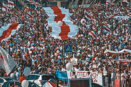 На несанкционированную акцию протеста к Дворцу независимости — резиденции президента Белоруссии Александра Лукашенко в Минске пришли несколько десятков тысяч человек. Об этом в воскресенье сообщает ТАСС.