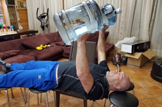 «Для силовых тренировок вполне подойдут подручные средства, которые есть в каждом доме, — рассказывает Николай Валуев. — Тренировочную скамью можно заменить табуретками, гантели — любыми тяжёлыми предметами с удобным хватом, вместо эспандера подойдёт медицинский жгут».