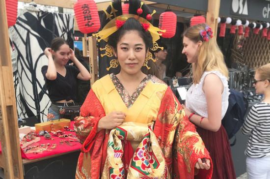 Традиционный японский летний праздник «Нацу Мацури» по формату напоминает обычное народное гулянье в парке. Обязательный элемент всего действия — это ярмарка и традиционные народные костюмы. Уже при входе в Парк Горького гостей встречала громкая японская музыка, а на территории музея Garage посетители оказывались в большом ярморочном пространстве с главной сценой посередине.
