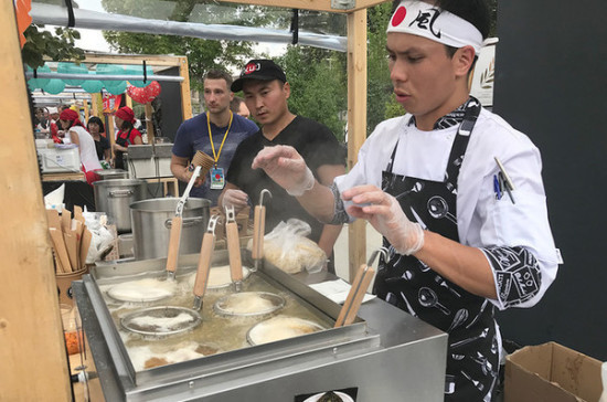 Основное пространство J-FEST, как и положено во время проведения «Нацу Мацури», занимала ярмарка, на которой гости могли купить различные японские товары, научиться игре в Го, японские шахматы Сёги, овладеть искусством оригами, узнать о том, как начать изучать японский язык с нуля. Обязательный элемент каждого летнего японского фестивали — дегустация блюд традиционной кухни. К чести организаторов необходимо отметить, что рамен в Парке Горького почти не отличался от лапши, которую вы могли бы купить, скажем, в районе Гиндза в Токио.