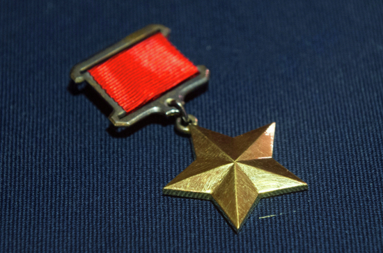 Любопытно, что при рождении высшей награды России вновь не обошлось без «странных» исторических поворотов. Первым, согласно указу президента за №384, звания Героя России был удостоен начальник Липецкого центра боевой подготовки и переучивания летного состава генерал-майор авиации Суламбек Осканов, ценой своей жизни предотвративший падение самолета на населенный пункт. Однако его вдове была вручена медаль Героя Российской Федерации за №2.
