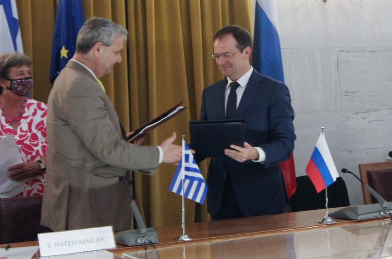 В ходе торжественной церемонии помощник Президента России Владимир Мединский и глава греческого фонда парламентаризма Эванфис Хадзивасилиу подписали совместное заявление и обменялись перечнями мероприятий, реализация которых запланирована обеими сторонами в рамках перекрёстного Года истории.