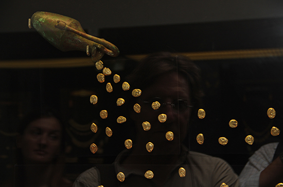 В музее-заповеднике мы заглядываем в Золотую кладовую, где хранятся уникальные древние драгоценности. Одна витрина пуста — она напоминает о том, что часть экспонатов из этой сокровищницы, известная как Скифское золото, по-прежнему находятся в Амстердаме. Очередное судебное заседание по этому делу, по словам главного хранителя заповедника Натальи Быковской, ожидается осенью нынешнего года.