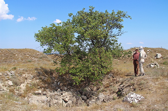 По пути, вновь вслед за Пушкиным, осматриваем Золотой курган, на вершине которого растёт дикий абрикос. Решением начальника экспедиции «Парламентской газеты» этому дереву присваивается наименование «Пушкинского абрикоса». Ну а если без шуток, то, на наш взгляд, это место действительно стоит того, чтобы по крайней мере установить здесь мемориальную табличку в память о пребывании поэта.