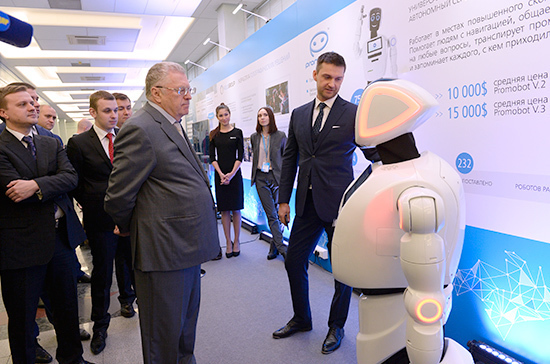 Лидер фракции ЛДПР Владимир Жириновский предложил использовать роботов для кадровой работы. «Прибор должен работать и определять уровень интеллекта. В перспективе кандидатов в депутаты, чтобы партии определяли, а потом представляли на выборы самых лучших! Такой прибор поборет бюрократизм, формализм, тогда только лучшие люди смогут занять ключевые посты и всем от этого будет хорошо», — сказал парламентарий.
