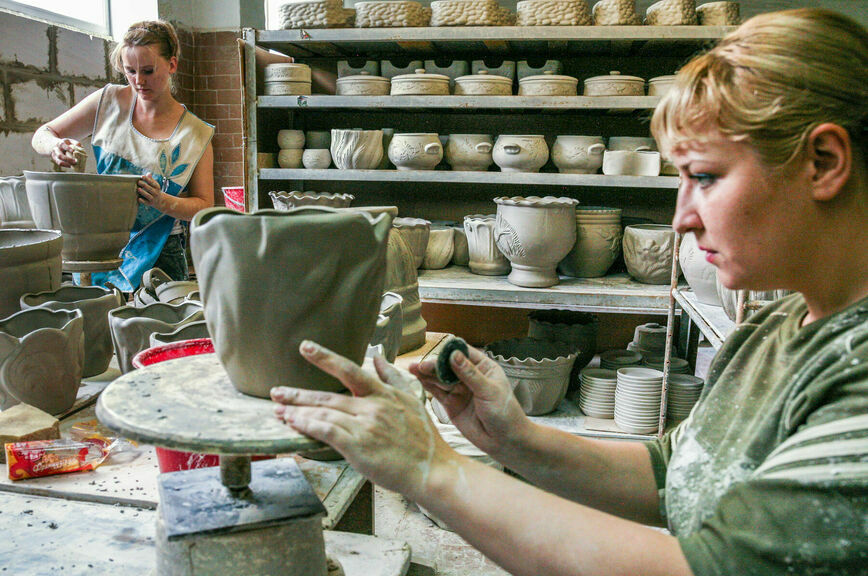 Местный гончарный промысел прославился в XIX веке, когда керамисты освоили цветную глазурь с эффектами подтеков. Для этого высушенное изделие обмазывали дегтем, посыпали порошком глазури и отправляли в обжиг. В итоге посуда и фигурки приобретали благородные оттенки коричневого, желтого, зеленого, серо-синего цветов.