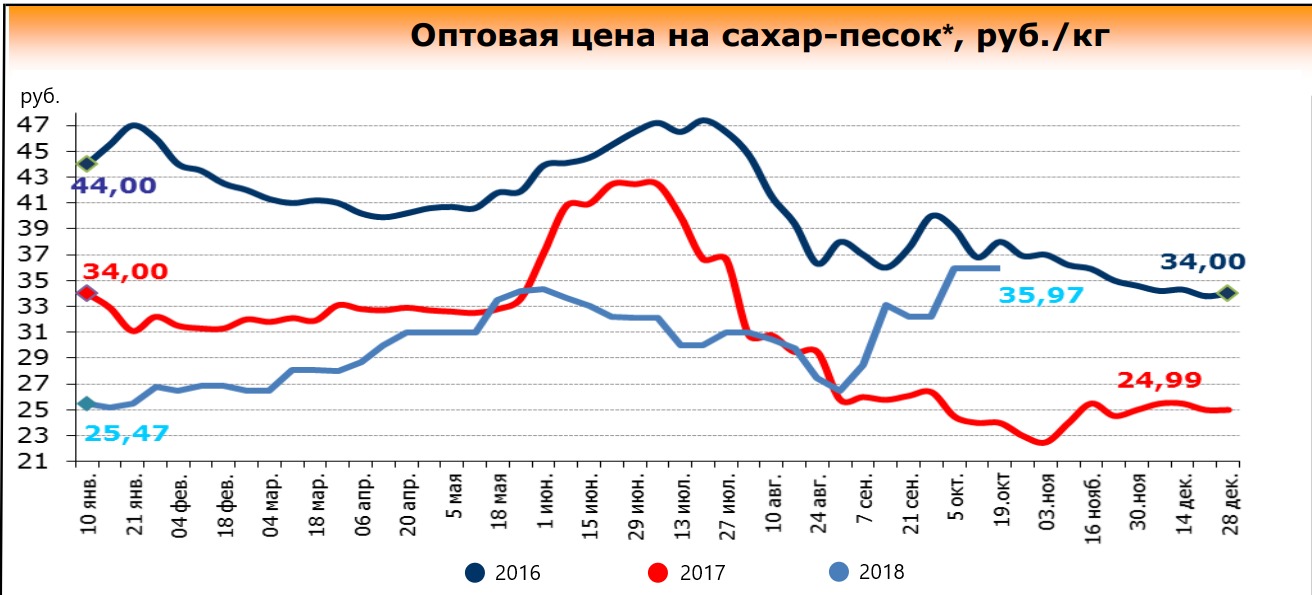 Средняя цена по ЮФО (с НДС); Источник: Минсельхоз, данные: Союзроссахар