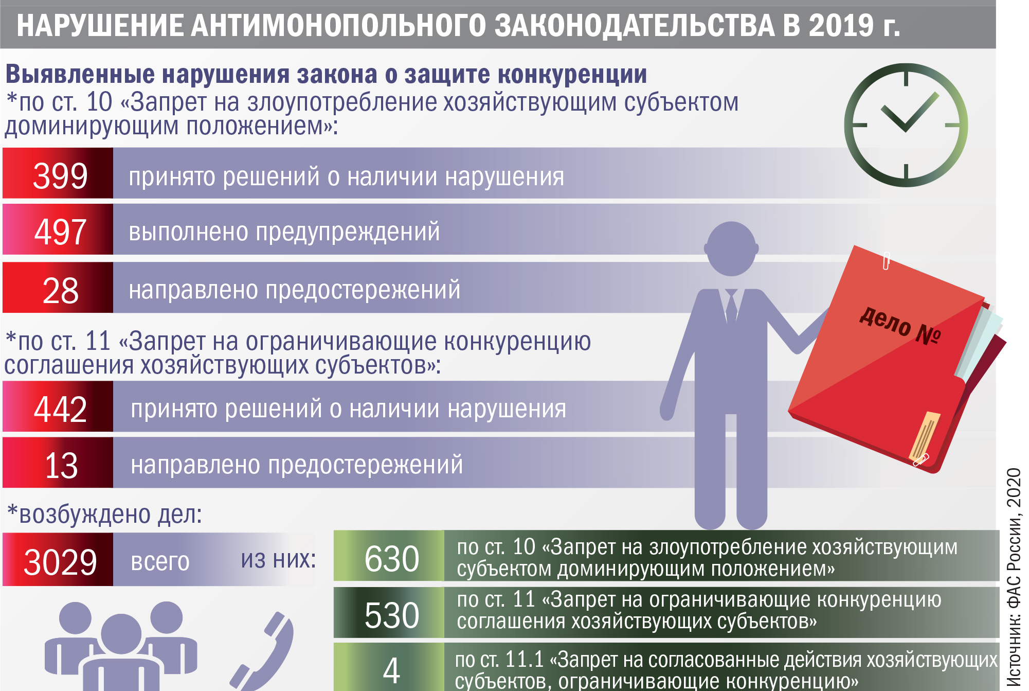 В борьбе с нарушениями антимонопольного законодательства ФАС делает акцент на их профилактику. Еще несколько лет назад мы узаконили институты предупреждений и предостережений. Получив их, компании оперативно устраняют нарушения, а граждане и бизнес быстрее восстанавливают свои права. На это направлен и вступивший в действие в марте этого года закон об антимонопольном комплаенсе — системе внутреннего контроля по предупреждению потенциальных нарушений. Она обязательна к внедрению для органов власти и добровольна для бизнеса. То, что немало компаний ее ввели, говорит об эффективности такого инструмента.