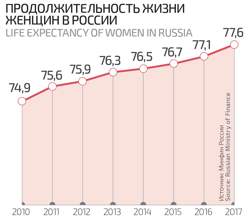 Проделанная работа позволила достичь хороших результатов: по итогам 2017 года продолжительность жизни женщин в нашей стране составила 77,6 года, что на 1,7 года больше, чем в 2012-м, и на 5,2 года больше, чем в 2004 году. Активные меры государства по борьбе с табаком позволили сократить число курящих женщин. Так, согласно глобальному опросу взрослого населения за период с 2009 по 2016 год в России распространённость потребления табака среди женщин снизилась на 34%. Достигнутые результаты показывают необходимость сохранения направления наших действий.