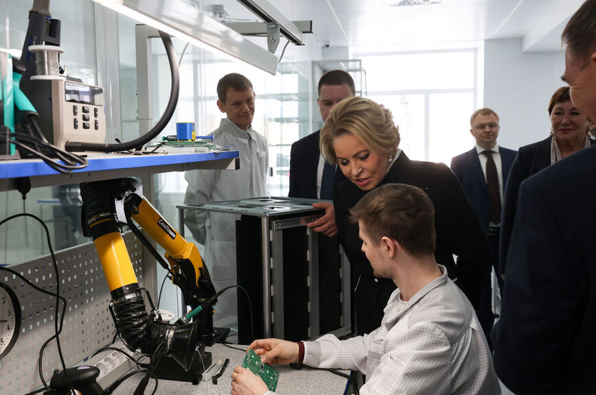 Один из них — Курганский индустриальный парк, на площадке которого трудятся 16 крупных производителей, обеспечивая работой сотни сотрудников, — Матвиенко посетила лично. Здесь изготавливают «умные» счетчики электроэнергии, двигатели, генераторы, трансформаторы, модульные энергоустановки, блочно-модульные котельные и тепловые пункты, трубы всех диаметров. Спикер ознакомилась с производством микросхем для радиоэлектронной промышленности, а также с перспективными технологиями переработки отходов.