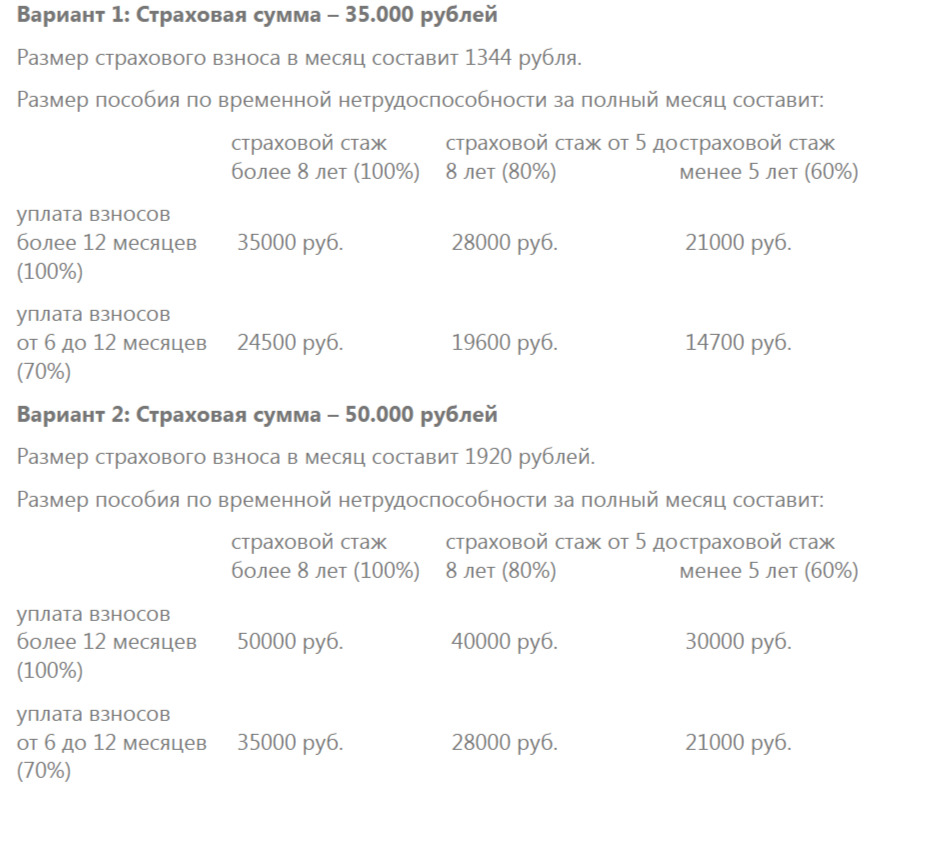 Например, максимальный размер пособия (100%) положен для работников, уплачивавших взносы более 12 месяцев и со страховым стажем более 8 лет. Если они платили по 1920 рублей в месяц, размер страхового пособия по нетрудоспособности за месяц составит 50 тысяч рублей.