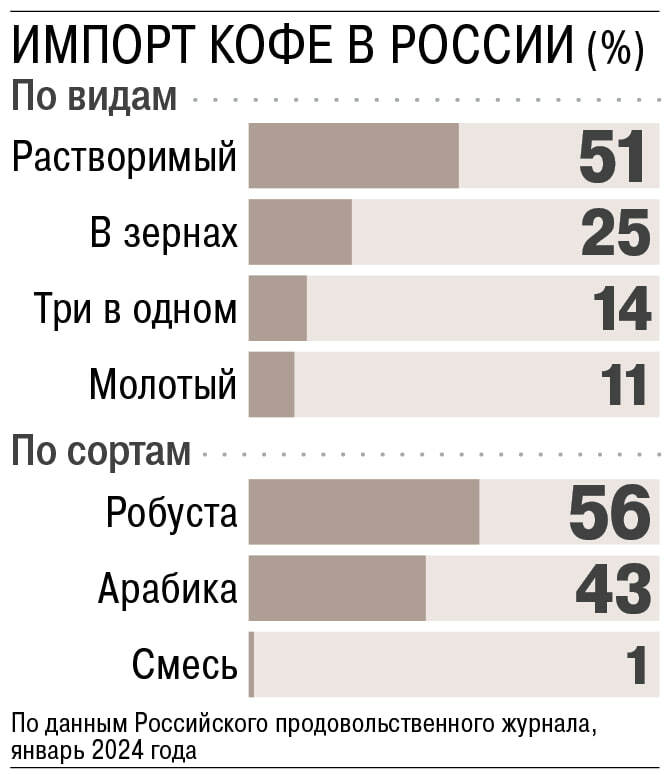 «Россия не является крупнейшим потребителем кофе в мире, но тем не менее мы рост цен также увидим, — пояснил эксперт. — Однако он будет достаточно опосредованным. Во-первых, все, кто занимается кофе, имеют складские остатки. Во-вторых, мы пьем в основном блендированный кофе, собранный из разных сортов и из разных регионов. Поэтому резкого подорожания не случится, но от роста цен как такового нам, увы, никуда не деться».