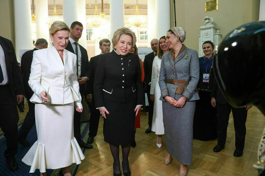 «Они получают новое развитие, но при этом сохраняют национальные традиции, орнамент, аксессуары. И это все — красота просто неземная!» — не скрывала своих эмоций спикер, осмотрев выставку в Таврическом дворце.