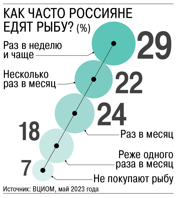 Согласно подсчетам Минздрава, ежегодно каждый россиянин должен потреблять не менее 28 килограммов рыбы. Но статистика свидетельствует, что в среднем люди потребляют 22 килограмма в год. В реальности этот показатель еще ниже, потому что при подсчетах учитывают всю рыбу целиком — с костями и внутренностями. Для оценки надо считать только то, что идет в пищу, полагают сенаторы.