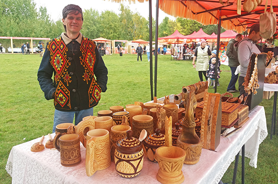 На ярмарке продукции можно найти массу уникальных вещей ручной работы. Интересны и истории тех, кто решил стать самозанятым. У каждого она своя. Одно объединяет этих людей — они горят тем, что делают. К примеру, Табрис Галаветдинов из Атнинского района вместе с семьёй занимается созданием цветных фигурок из ДВП для украшения детских садов. Он признался, что для него это пока хобби, чтобы заинтересовать своих детей заниматься трудом.