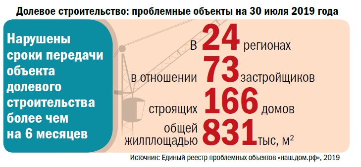 Согласно данным Единого реестра проблемных объектов, всего в 77 субъектах Федерации насчитывается 2559 домов, которые так и не достроили по долевой схеме. Реальные цифры могут быть еще больше. О том, что местные власти во многих регионах пытаются приукрасить положение дел, говорит координатор Общероссийского движения дольщиков, член рабочей группы Госдумы по защите прав участников долевого строительства Альмира Сарсеева. Тревожные сигналы поступают из Краснодарского и Пермского краев, Ростовской, Тверской, Ленинградской, Новосибирской, Нижегородской, Ярославской областей.