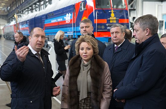 Валентина Матвиенко увидела их работу на заводе в Брянской области, где выпускают сверхнадёжные локомотивы
