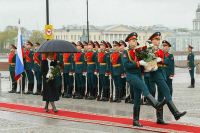 Завершилось мероприятие прохождением роты почетного караула по проезжей части Адмиралтейской набережной под звуки торжественного марша в исполнении военного оркестра.