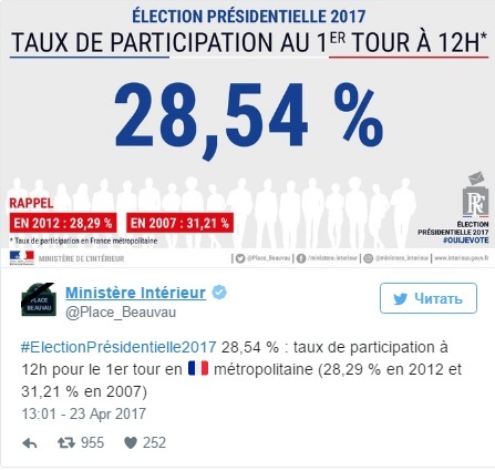 23 апреля во Франции стартовал первый тур президентских выборов.