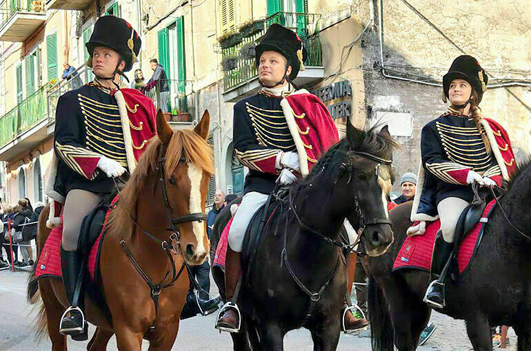 Одной из отличительных черт карнавала в Рончильоне является парад гусар, которые то рысью, то галопом проносятся по городским улицам. Эта традиция зародилась в 1866 году, и местные фольклористы утверждают, что причиной возникновения столь необычного парада стала история любви. Согласно легенде, французский капитан, командовавший отрядом гусар, был направлен на защиту Папского государства и прибыл в Рончильон. Там он увидел молодую красавицу и без памяти влюбился в нее. Чтобы завоевать сердце своей дамы, во время карнавала офицер вместе со своим отрядом решил «покрасоваться» перед девушкой, и с тех пор ежегодно более десятка гусар повторяют поступок влюбленного француза праздничное шествие.