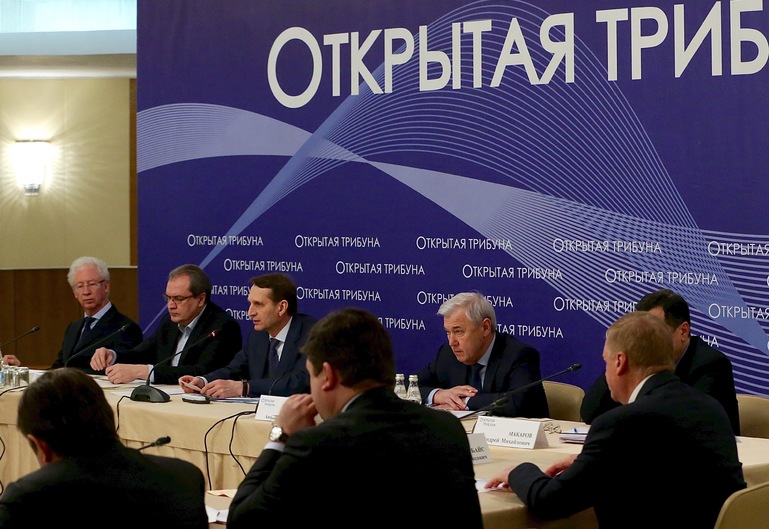 Открывая встречу, председатель Государственной Думы Сергей Нарышкин напомнил о своём поручении профильным комитетам палаты провести экспертные дискуссии по курируемым отраслям. «Дума стала возвращать себе статус места для дискуссий», — отметил он, подчеркнув, что особенно это касается экономики в её не только российском, но и мировом разрезе. А в мире сегодня, по его мнению, создаются совершенно новые условия хозяйствования. «На наших глазах формируются новые интеграционные проекты, оставляющие за бортом и МВФ и Всемирный банк и другие международные институты», — считает Сергей Нарышкин. Он привёл, в частности, в пример договор о Транстихоокеанском торговом партнёрстве, которому пытается противостоять Евросоюз и Китай. И эти новые условия, в которые вступает мировое хозяйство, а также сложное положение российской экономики, и грядущие предвыборные дискуссии требуют совершенно новых подходов к налогово-бюджетной, промышленной, денежно-кредитной политике. Он пообещал также в скором времени провести масштабные парламентские слушания по всему комплексу этих взаимосвязанных вопросов.