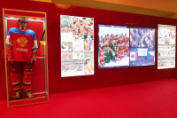 Среди экспонатов была представлена современная и советская хоккейная форма, в которой выступали легендарные хоккеисты, а также множество трофеев, завоёванных нашей сборной. Экспозицию посетили ветераны отечественного хоккея, советский хоккеист и заслуженный тренер СССР Анатолий Кострюков и Виктор Шувалов — нападающий советской хоккейной сборной, впервые взявшей первое место на чемпионате мира в 1954 году и олимпийское золото двумя годами позже. Интерес к выставке также проявило множество депутатов: никогда не пропускающий спортивные мероприятия в Госдуме, лидер фракции ЛДПР Владимир Жириновский, председатель Комитета по физической культуре, спорту и делам молодёжи Дмитрий Свищев, его коллеги Николай Валуев и Игорь Ананских.