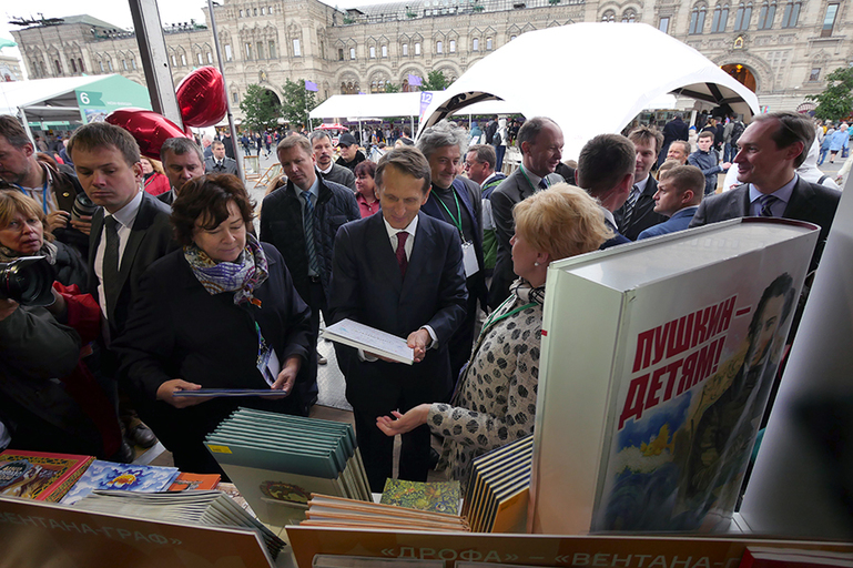Сам Сергей Нарышкин после приветственных слов безукоризненно прочёл со сцены стихотворение Пушкина «Клеветникам России», отметив его невероятную актуальность и своевременность, хотя великие строки и были написаны 180 лет назад. Кстати, сборник стихов поэта с экслибрисом, специально созданным к сегодняшнему Пушкинскому дню, спикер добавил на фестивальную полку «Книги моей жизни», изрядно пополнившуюся за эти дни с помощью высоких гостей.По словам самого Нарышкина, здесь, на Красной площади, каждая книга ждёт своего читателя и каждый читатель найдёт для себя книгу по вкусу, ведь Россия была и впредь обязана быть одной из самых читающих стран мира. «Отечественная литература — это неисчерпаемый источник мыслей, чувств, переживаний и одновременно хранилище всех богатств великого русского языка, день которого мы сегодня отмечаем», — высказался Нарышкин.