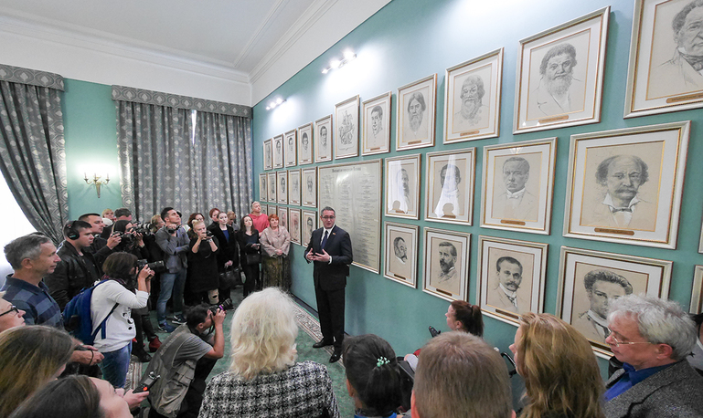 «Здесь, в этом зале, проходят награждения грамотами почётных москвичей, — рассказала она. — Каждый депутат за год имеет возможность наградить от своего округа двоих горожан».