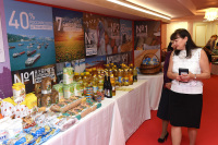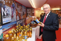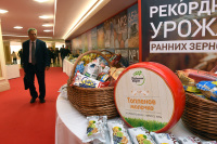 Во вторник в фойе Совета Федерации появилась большая ёлка, на которой вместо игрушек развесили бутафорскую колбасу, бутылки с растительным маслом, сыр, семечки, пряники, вино