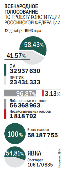 - Проведение конституционной реформы в 1993 году, обнародование и обсуждение проекта новой Конституции проходило в период с 5 июня до 12 декабря 1993 года, то есть в течение шести месяцев. Разработка текста Конституции в эти сроки отвечала объективно сложившимся в тот период общественно-политическим условиям. Трансформация правовой и политической системы в России в девяностые годы требовала оперативных и решительных действий, направленных на создание нормативной базы найденного общественного консенсуса. Перед государством стояла задача создать незыблемый правовой фундамент, способный обеспечить стабильное развитие государства на многие годы вперед, что и было сделано.