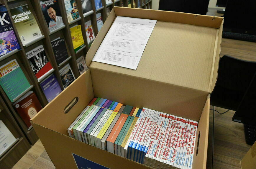 В течение нескольких часов продолжалась погрузка коробок с книгами в специальные машины у здания Парламентской библиотеки на проспекте Вернадского в Москве 19 июня. На каждой коробке — логотип библиотеки и перечень книг. Он очень обширный: Пушкин, Гоголь, Достоевский, Толстой, Чехов, Булгаков, Зощенко, Шолохов, Солженицын, Шекспир, Мольер, Твен, Фицджеральд, Ремарк, Хемингуэй, классики детской литературы — Чуковский, Маршак, Михалков, Сутеев, Успенский, Андерсен, Линдгрен. Книжные серии «Школьное чтение», «Внеклассное чтение», «Библиотека школьной классики», «Лучшая мировая классика», «Русская классика», «Библиотека всемирной литературы», «Золотая коллекция поэзии», «Мудрость тысячелетия», «Сказки и мифы народов мира», «История России». А также новые иллюстрированные справочники и энциклопедии по истории и географии России с включенными в них сведениями о новых регионах РФ.