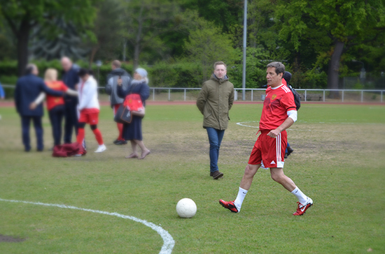 Матч 6 мая проходил в Берлине, и немцы у себя дома небезосновательно надеялись взять реванш. Об этом решительно заявил перед встречей на поле сам Томас Опперман. Но надежды его не оправдались, хоть помимо родного поля хозяевам помогала холодная и дождливая погода. Несмотря на жёлтую карточку, выданную судьёй немцам и травмой немецкого же игрока, схватка 6 мая завершилась победой россиян со счётом 2:1. «Наш тренер учит нас наступательному футболу!» — объяснил победу один из игроков — депутат Госдумы Отари Аршба.