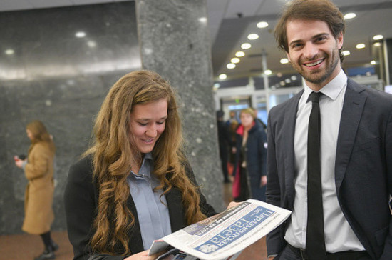 «Это поездка для меня — вдохновение, новые знания. Я пишу о политике, и мне интересно узнать позицию России по многим вопросам», — поделилась Селин Эмма Ла Кур из Дании, член Международной ассоциации образовательных дебатов, пока мы шли по широким холлам. Как оказалось, многие из молодых людей, пришедших сегодня, 29 марта, в Госдуму, изучают русский язык. Взяв на стойке «Парламентскую газету», гости с интересом прочитали свежий выпуск нашего издания.