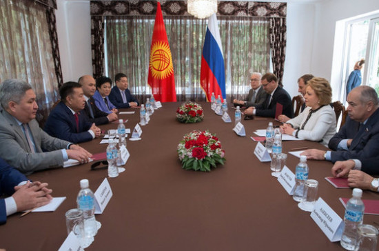 Что касается Киргизии, то эта страна, ставшая членом Евразийского экономического союза (ЕАЭС) всего два года назад, показывает отличные результаты интеграции, отметила спикер Совфеда. «Мы вносим большой вклад в укрепление межгосударственных отношений, которые вышли на стратегический уровень, благодаря лидерам двух стран. Мы укрепляем отношения между людьми — парламентскую дипломатию, культурное и образовательное пространство. Создаются привилегированные условия для бизнеса», — сказала Матвиенко, добавив что её встреча с Президентом Республики Алмазбеком Атамбаевым стала очередным доказательством крепнущих двусторонних отношений.