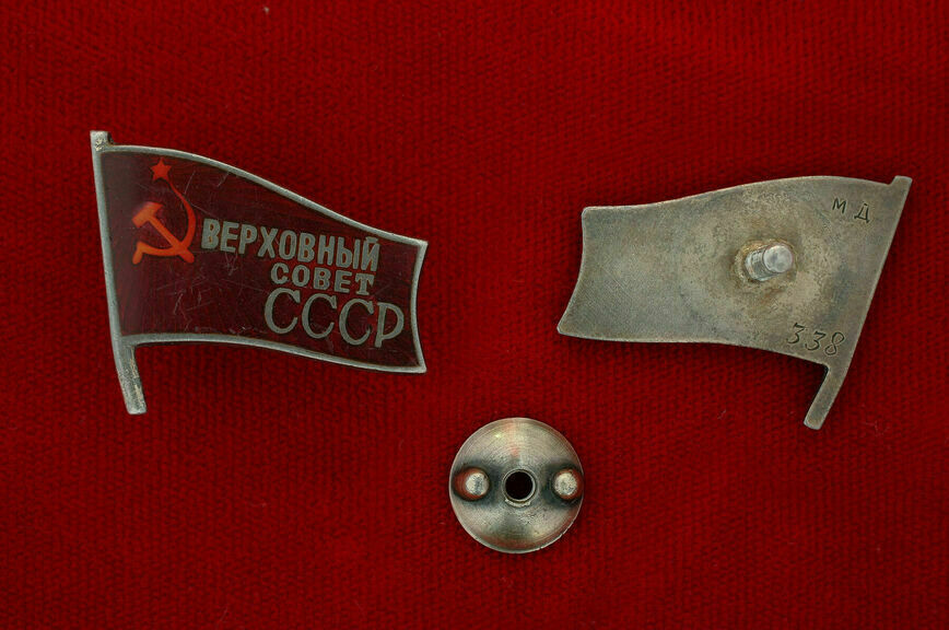 В советское время у законодателей появилось удостоверение — «депутатский билет». На его левой стороне разместили герб Советского Союза, номер созыва, печать Президиума Верховного Совета, подпись председателя Президиума. Справа — фото и подпись депутата.