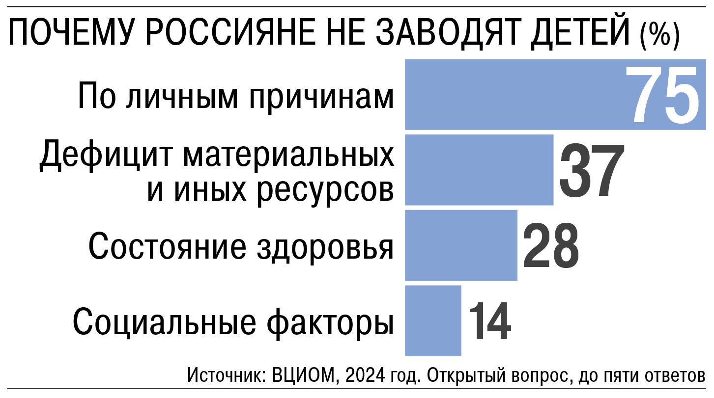 У каждого есть свое мнение, когда создавать семью, рожать и как воспитывать детей. «Но пропагандировать отсутствие детей как норму — это не наш культурный код и не наши традиционные семейные ценности», — сказала «Парламентской газете» зампредседателя Совета Федерации Инна Святенко.