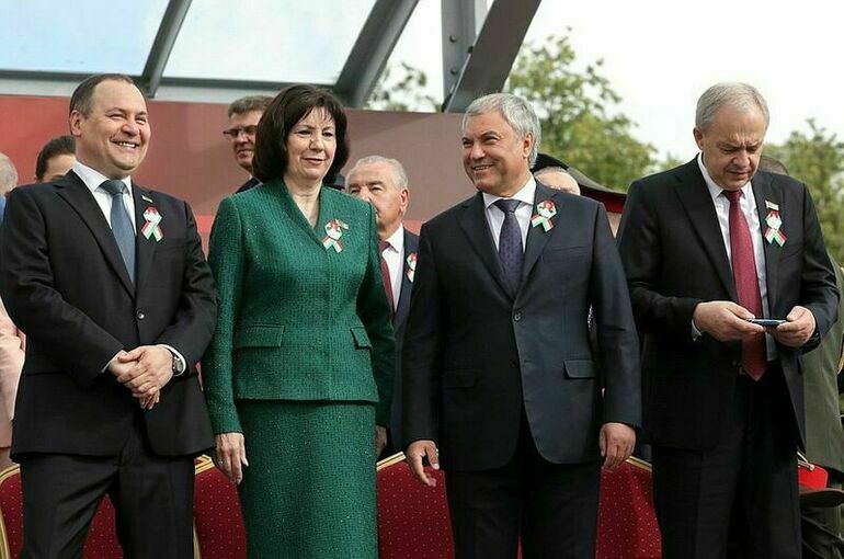 В Минске же в этот день состоялся военный парад. Его посетил председатель Государственной Думы Вячеслав Володин. Накануне он встретился с Александром Лукашенко и председателем Палаты представителей Национального собрания Республики Беларусь Игорем Сергеенко.