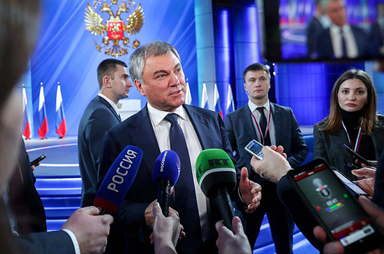 «Сегодня президент предложил укрепить суверенитет нашей страны, хотелось бы обратить на это внимание», — сказал спикер Госдумы.