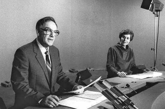 До рождения программы «Время» наши, как принято говорить, голубые экраны обходились «телевизионными новостями». Название этой рубрики было и неудачным, и двусмысленным: многие задавали напрашивающийся вопрос — это что за новости о телевидении? Дикторы работали на них парами.