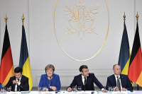 Зеленский также отметил, что в Донбассе также нужны выборы, который будут признаны легитимными Украиной и всем миром. Но, отметил президент, они не могут быть таковыми, если пройдут под звуки выстрелов, без контроля над границей и не по украинскому законодательству.