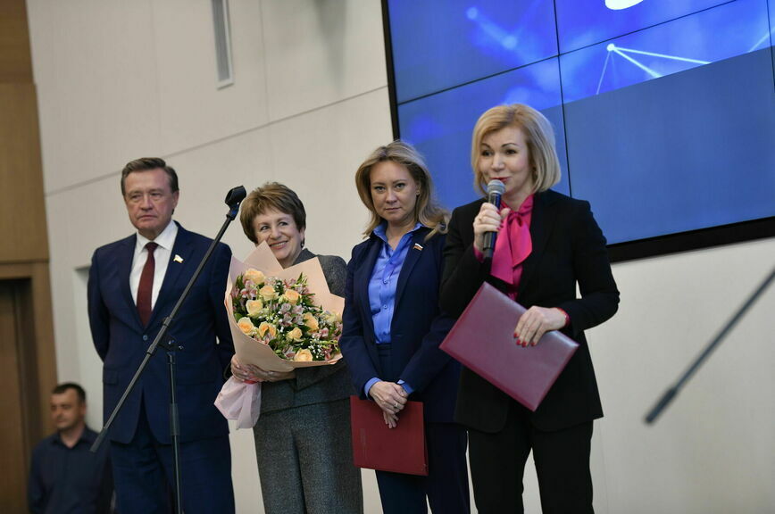 От Совфеда вместе поздравляли зампреды сразу нескольких комитетов: Екатерина Алтабаева — по науке, образованию и культуре, Ольга Забралова — по социальной политике, Елена Зленко — по аграрно-продовольственной политике, Сергей Рябухин — по бюджету и финрынкам. Были цветы, подарки, грамоты сотрудникам.