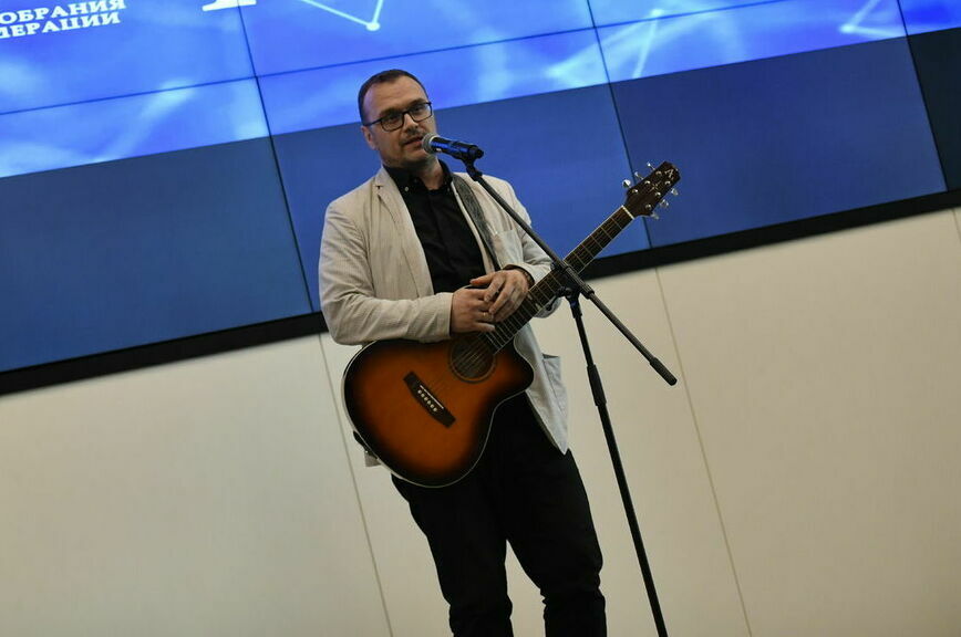 А завершился праздник гимном «Парламентской газеты». А точнее «Песенкой парламентского корреспондента», которую сочинил и исполнил наш коллега Никита Вятчанин. Заказывали, сказал он, гимн, а родилась песенка. Бодрая такая, как сама наша работа.