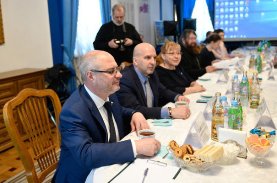 В Синодальном отделе по благотворительности депутаты Госдумы встретились с его председателем, епископом Орехово-Зуевским Пантелеимоном (Шатовым). Разговор, предварявший знакомство с центрами помощи службы «Милосердие», шёл о путях взаимодействия государства с некоммерческими социальными службами, в том числе церковными.